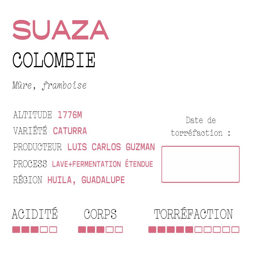 Luis Carlos Guzmán, troisième génération de producteurs de café, possède la ferme El Diviso à Guadalupe (Huila), où il cultive 3,6 hectares de café. Après avoir commencé dans le café en 2009 et acheté sa propre ferme en 2014, il s’est spécialisé dans le café de spécialité, approfondissant ses connaissances en variétés, fermentation et séchage. Sa troisième place dans un concours local a renforcé sa motivation à améliorer la qualité de sa production et les conditions de vie de sa famille.